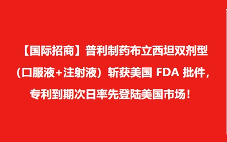 【国际招商】普利制药布立西坦双剂型(口服液+注射液)斩获美国 FDA 批件,专利到期次日率先登陆美国市场!