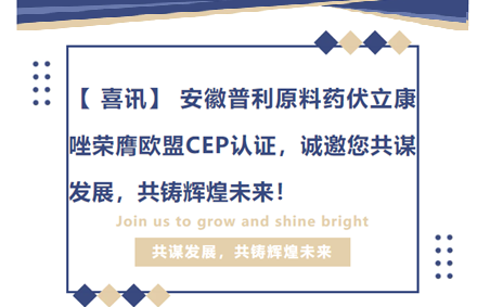 【 喜讯】 安徽普利原料药伏立康唑荣膺欧盟CEP认证,诚邀您共谋发展,共铸辉煌未来!
