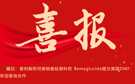 瞩目:普利制药司美格鲁肽原料药 Semaglutide提交美国DMF,欢迎垂询合作