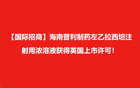 【国际招商】海南普利制药左乙拉西坦注射用浓溶液获得英国上市许可!