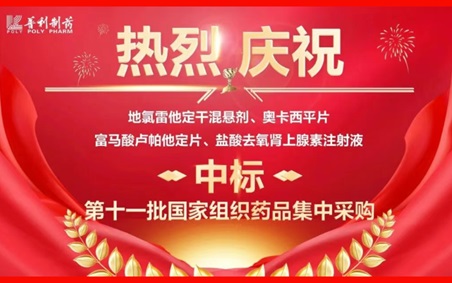 【普利制药四个品种第十一批国采中标】地氯雷他定干混悬剂、奥卡西平片、富马酸卢帕他定片、盐酸去氧肾上腺素注射液中标第十一批国家集采