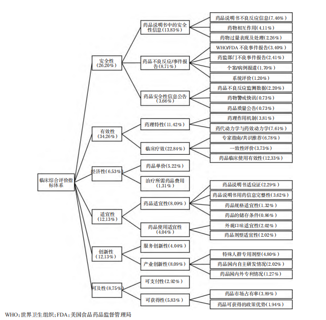 方法 运用文献调查法和专家调研法初步确定基于安全性、有效性、经济性、适宜性、创新性、可及性6个维度的临床综合评价指标;采用德尔菲法和层次分析法对评价指标体系的核心内容进行评价和筛选;采用Likert 5级评分法对指标的重要性进行赋值;借助系统评价、药品说明书、专家指南/共识、药品不良反应监测报告等,根据临床综合评价指标体系收集各来源证据并进行定性及定量整合分析;由专家根据地氯雷他定各维度临床综合评价证据进行评分,结合临床综合评价指标体系权重计算得到地氯雷他定三级指标的临床综合评价得分,各指标得分累加即为药品的临床综合评价总分,并与氯雷他定进行比较。